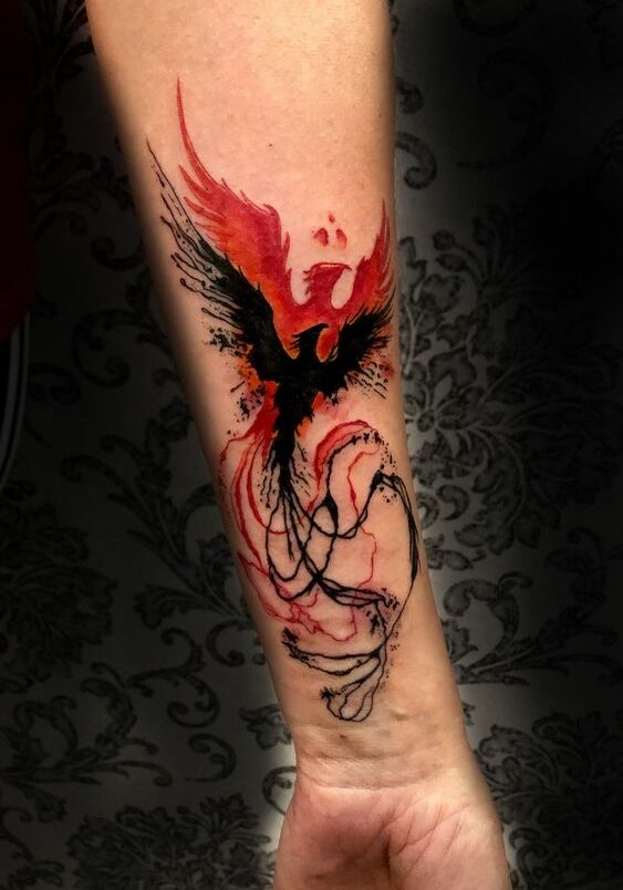 Solitamente dipinta da sola, la fenice può anche essere associata. Tra le frasi che si possono tatuare insieme al famoso uccello troviamo il classico Post fata resurgo, ovvero Dopo la morte torno ad alzarmi, motto tipico dell’animale.