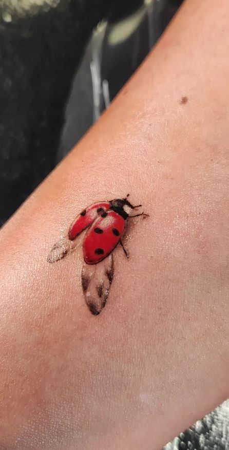 I colori sono resi in modo vivido, e ogni sfumatura, ombra e segno distintivo dell’insetto è rappresentato con cura. Questo stile è ideale per coloro che desiderano una rappresentazione fedele della coccinella sulla loro pelle.