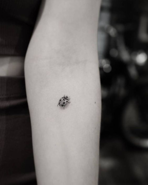 1. Coccinella solitaria: Un’idea classica per un tatuaggio con la coccinella è rappresentarla da sola. Questo design mette in evidenza la bellezza semplice e l’energia positiva della coccinella stessa. Puoi optare per una coccinella stilizzata o un’interpretazione più realistica, a seconda del tuo stile personale.