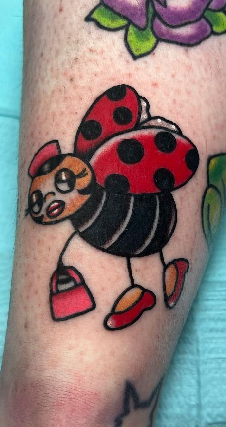 In questo stile, la coccinella è spesso stilizzata in un modo iconico, con contorni neri spessi e l’uso di colori primari brillanti come il rosso, il nero e il verde. Questo stile è ottimo per chi cerca un aspetto audace e atemporale.