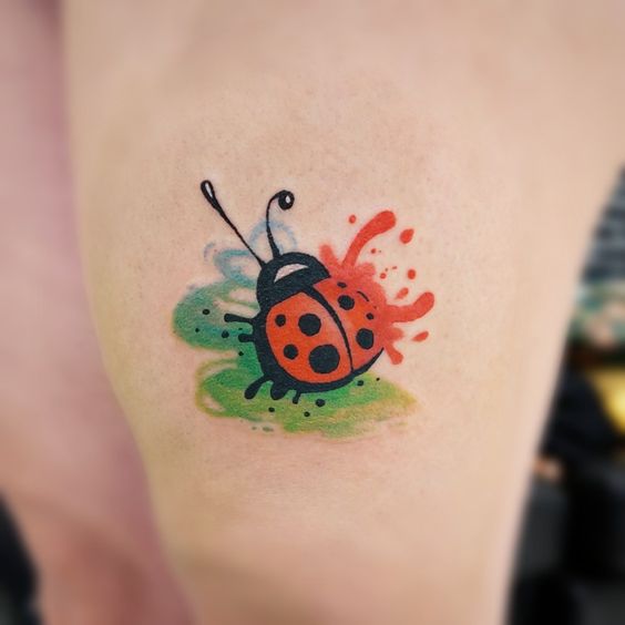 Un tatuaggio con la coccinella in stile aquarello sembra un dipinto artistico sulla pelle, con colori che scorrono dolcemente l’uno nell’altro. Questo stile è perfetto per chi cerca un tatuaggio con un tocco artistico e un aspetto più delicato.