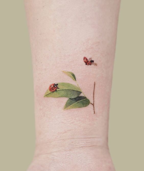 5. Coccinella in diverse posizioni: La coccinella può essere rappresentata in varie pose e posizioni. Puoi optare per una coccinella in volo, posata su una foglia o camminante su un ramo. Ognuna di queste pose può aggiungere ulteriore significato al tuo tatuaggio.