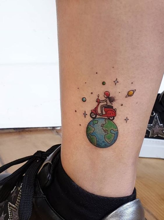 • Caviglia: La caviglia è un’altra posizione preferita per tatuaggi più piccoli. Un disegno con il mondo qui può essere nascosto con pantaloni lunghi o mostrato con abiti più corti. Tuttavia, ten in considerazione che la pelle sulla caviglia può essere sensibile, quindi il dolore potrebbe essere più acuto in questa zona.
